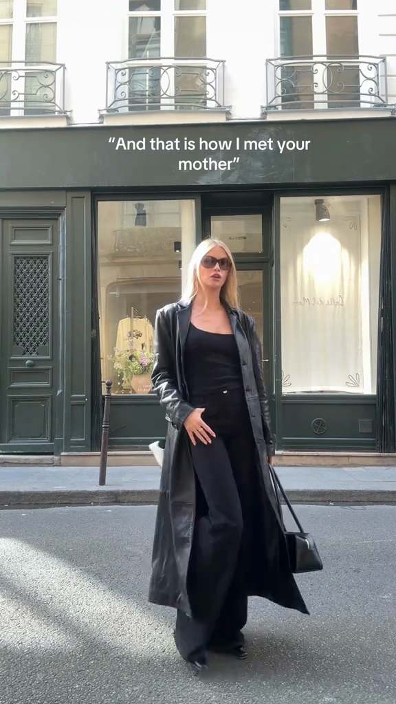 Black leather trench coat