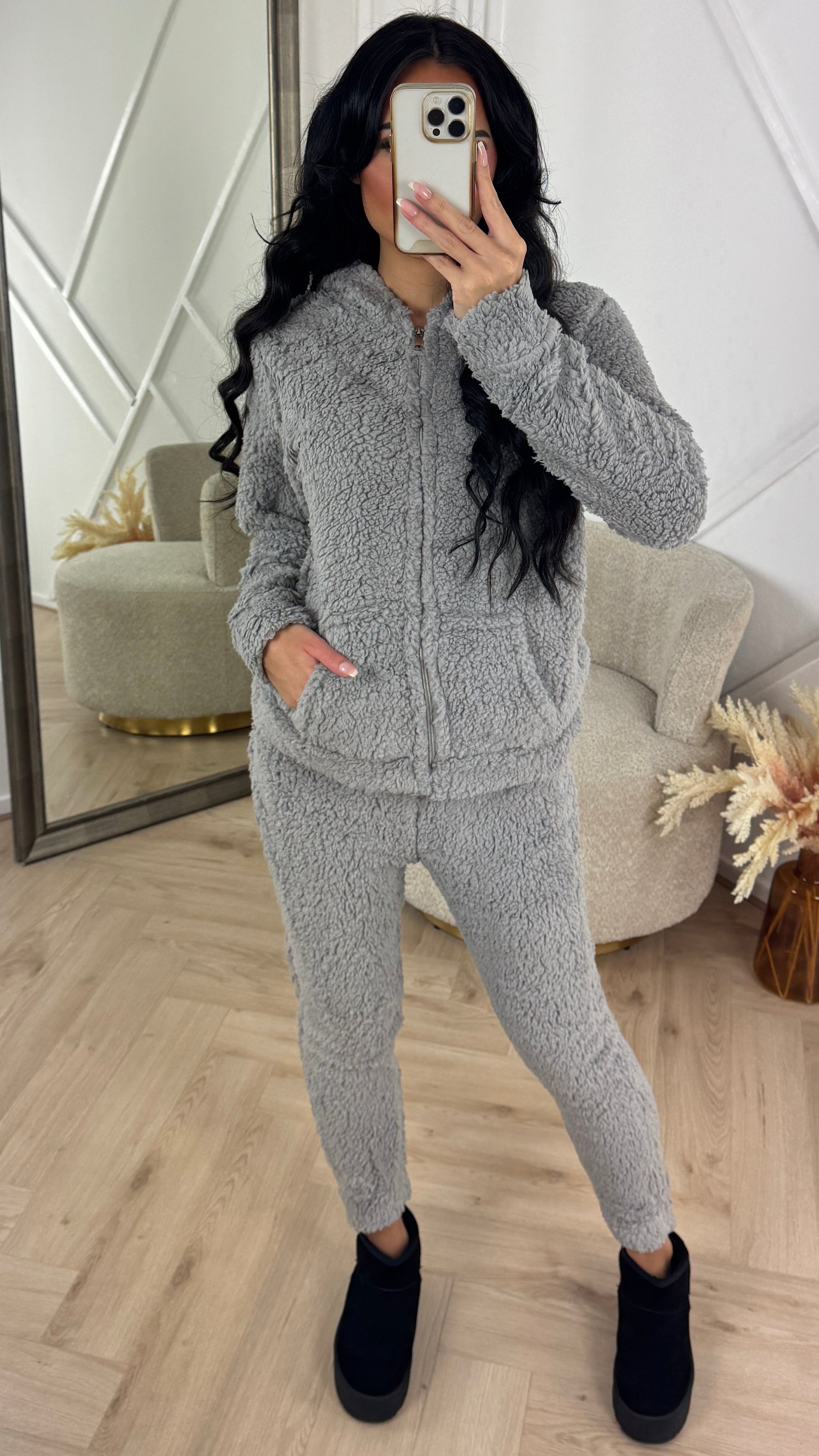 - Two-piece set made of soft teddy fabric