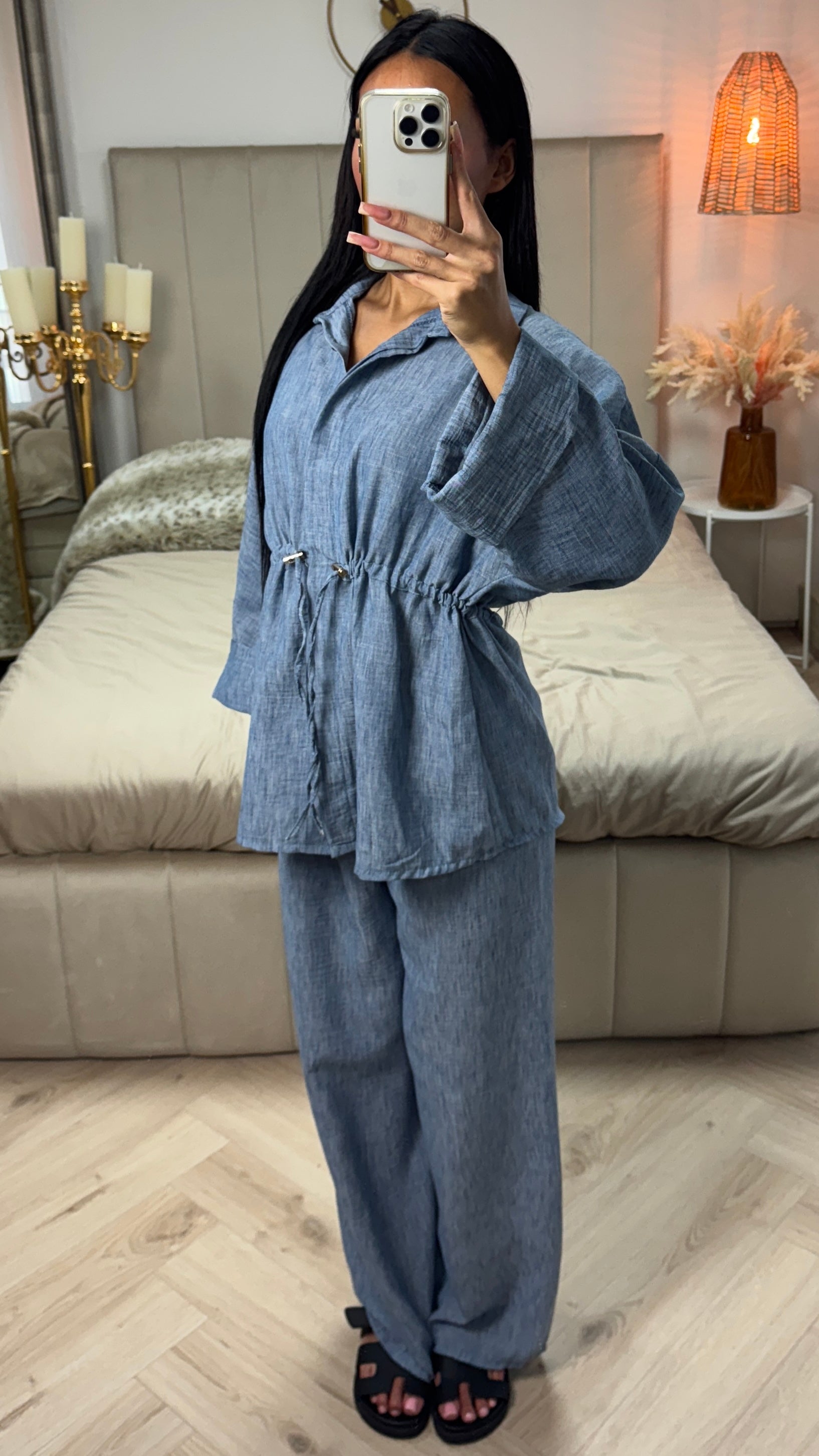 Essential Integrated Tie Waist Belt Set Golden Buttons Detail