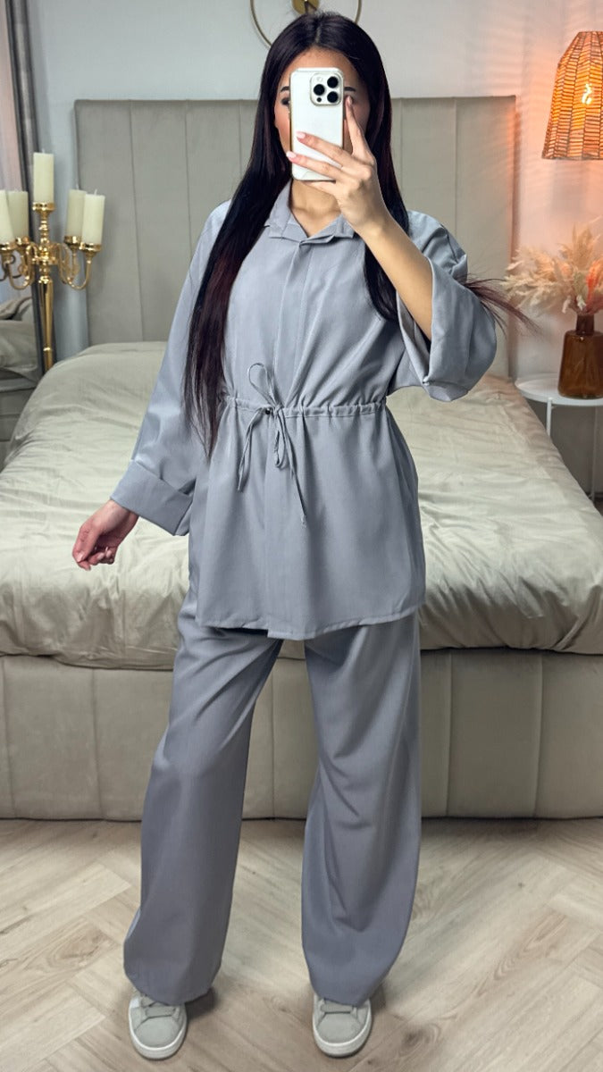 Integrated Waist Tie Detail Set Golden Buttons