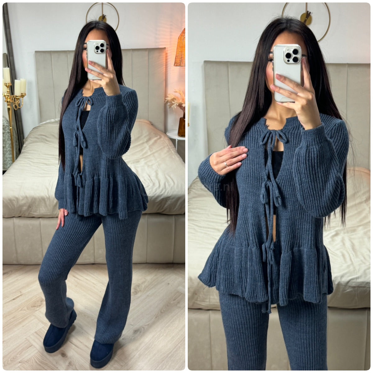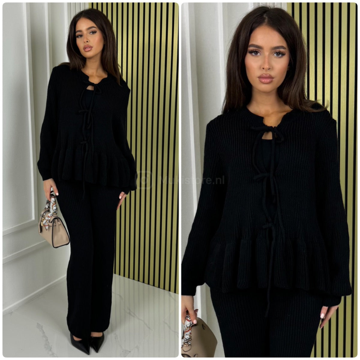 Ruffle Detail 3 Ties Knitwear Set