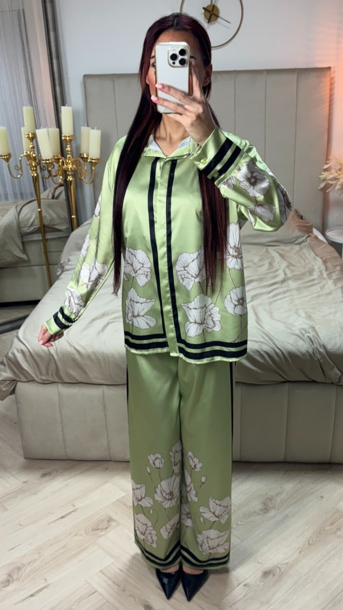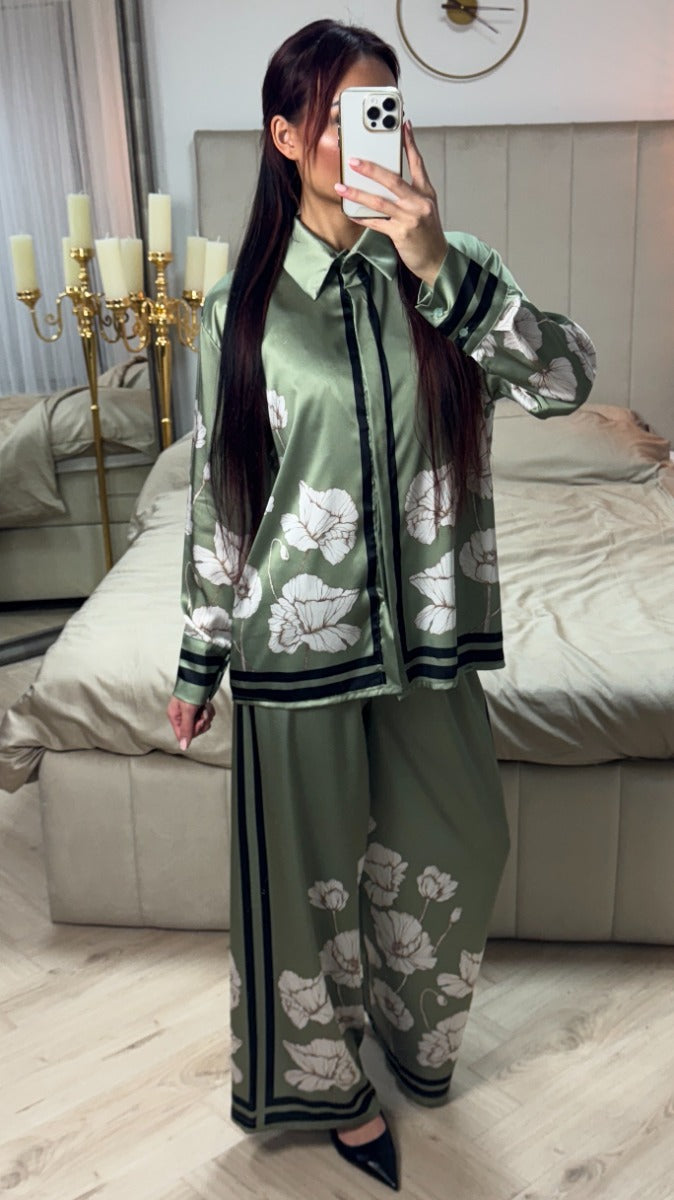 đź”–Satin Flower Print Blouse Set