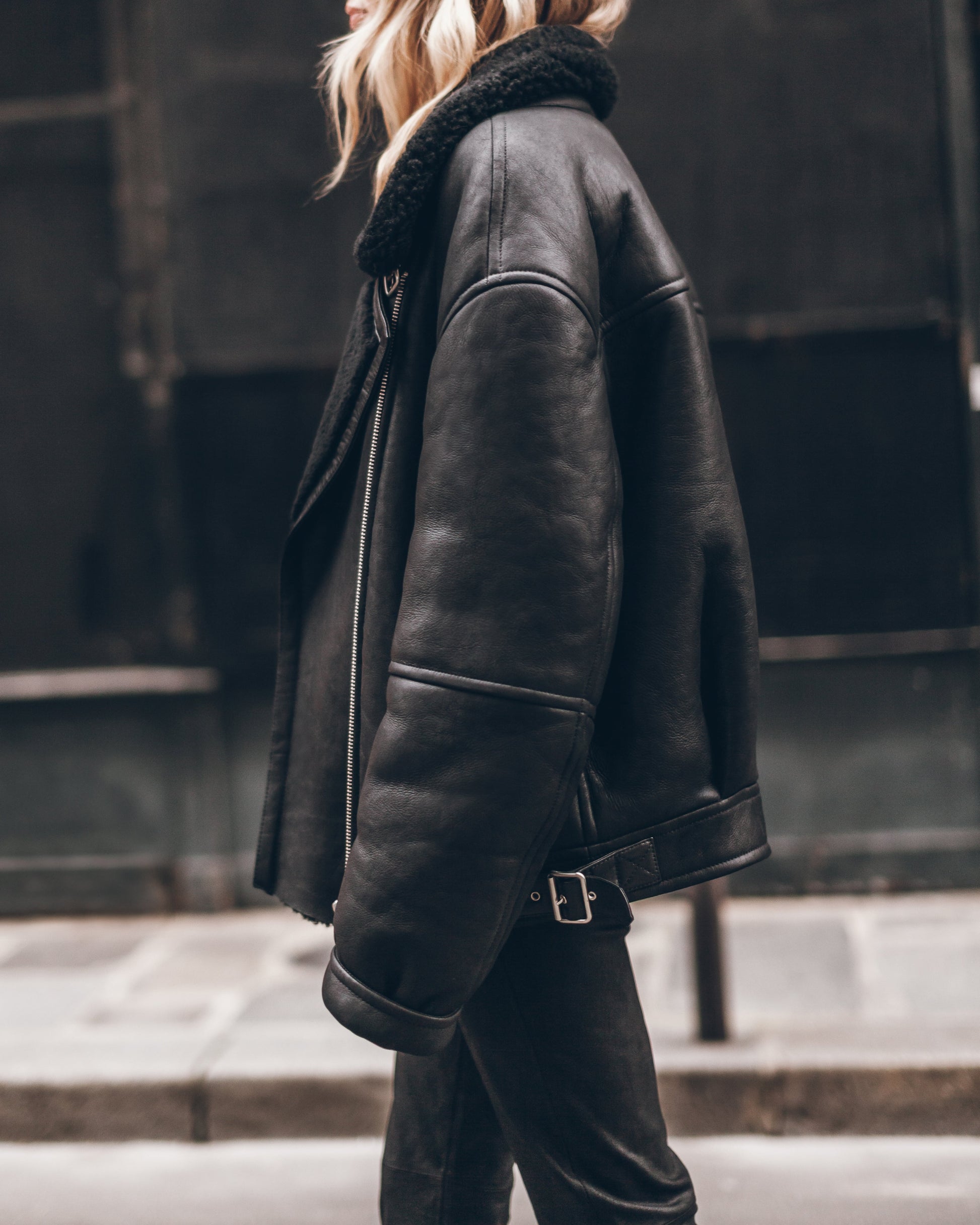 Luxurious leather coat with a lapel collar and long sleeves with optional turn-up cuffs. Detailed with a crossover zip and a belt fastening hem on the front, front pockets and soft, ultra-warm shearling lining.