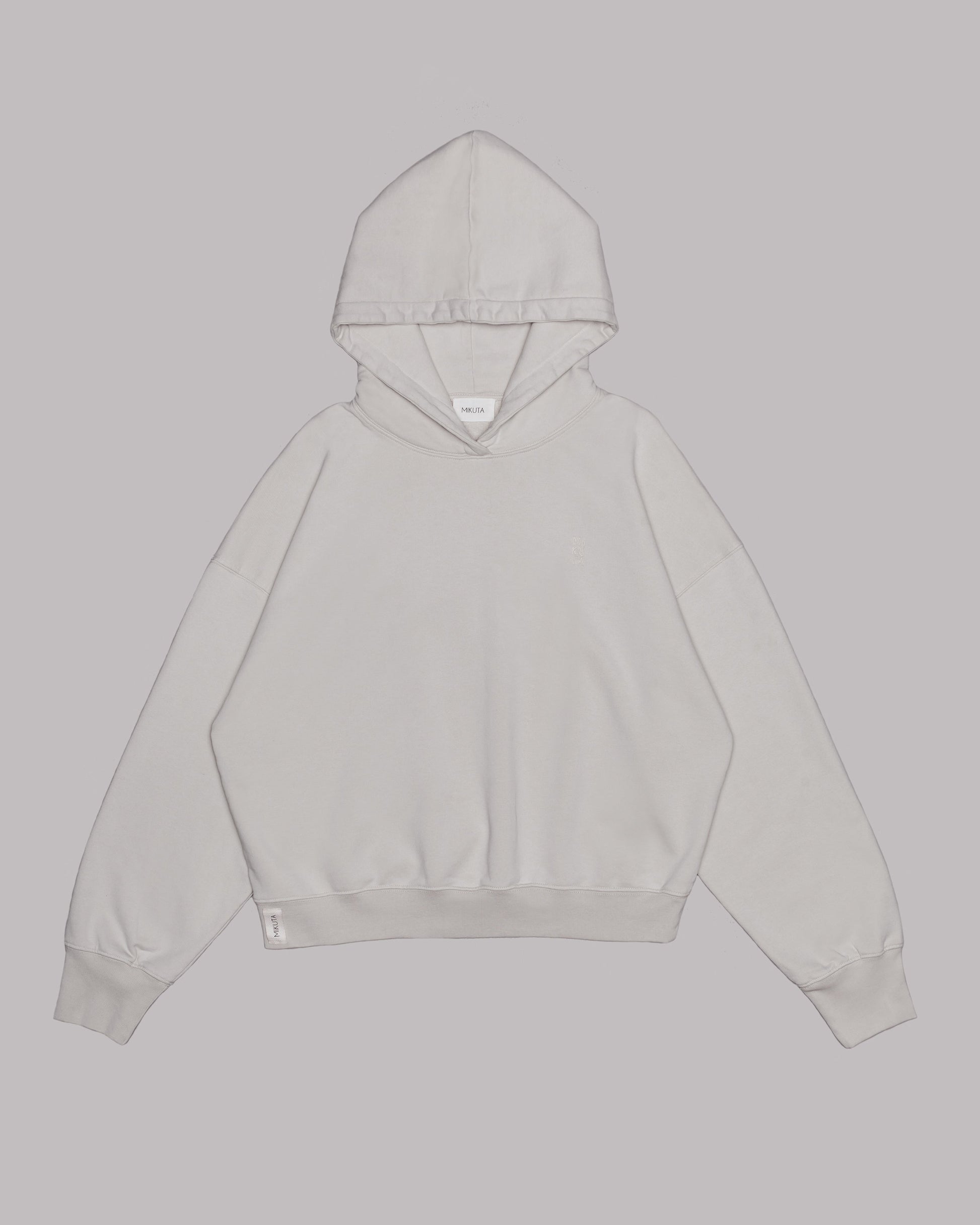 Hoodie in light grey/beige with an embroidered logo on the chest.